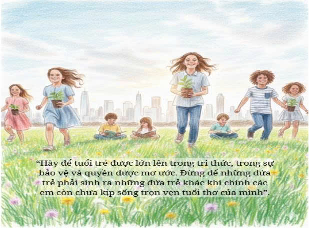 Từ những câu chuyện ấy, tôi rút ra một thông điệp giản dị nhưng cũng rất quan trọng: mỗi đứa trẻ đều có quyền được lớn lên đúng với nhịp của mình. Lớn lên không phải là mặc áo cưới sớm hơn người khác, không phải là làm cha mẹ sớm hơn người khác, mà là được học, được mơ, và được sửa trong sự bảo vệ của gia đình và xã hội.